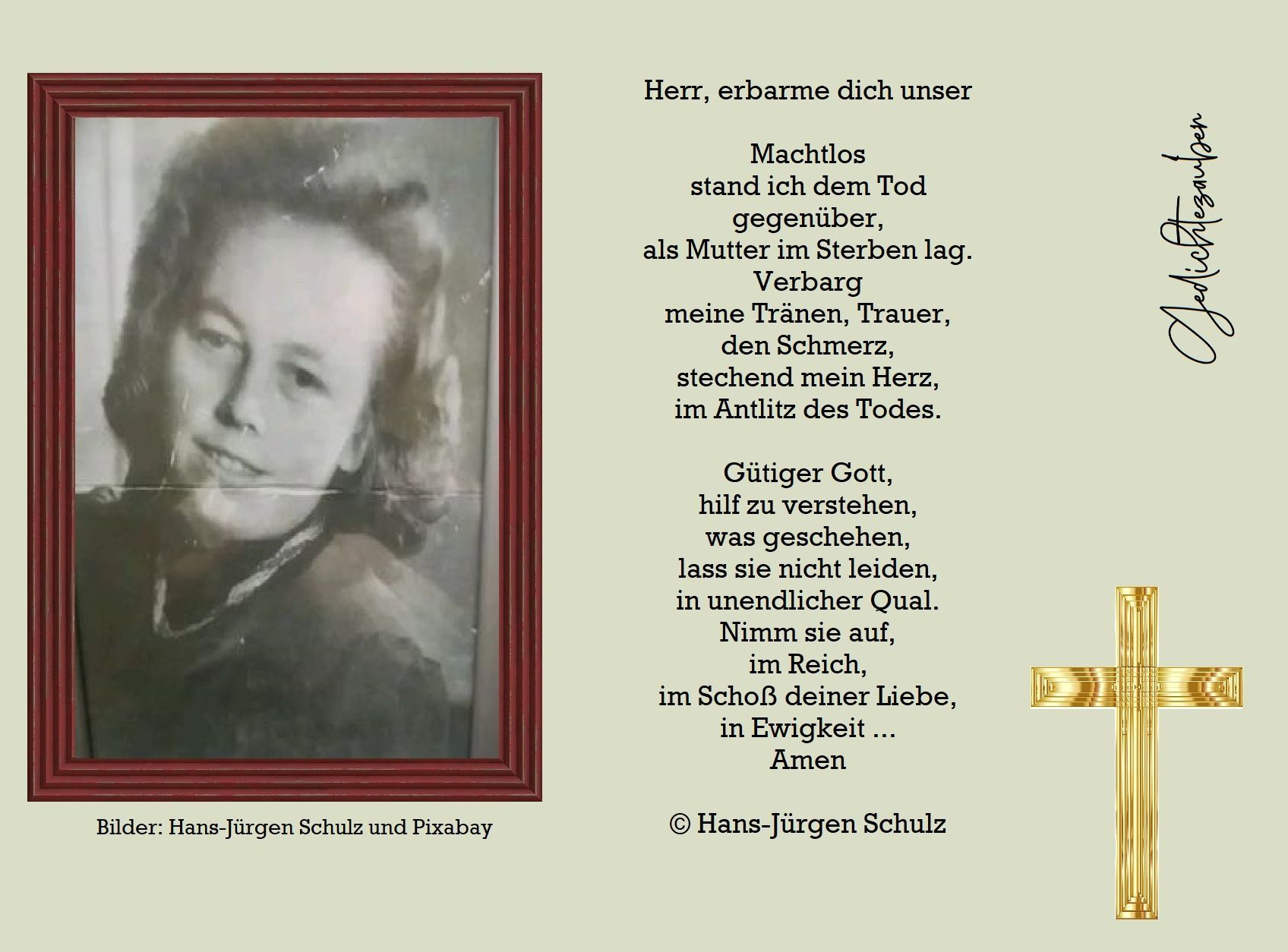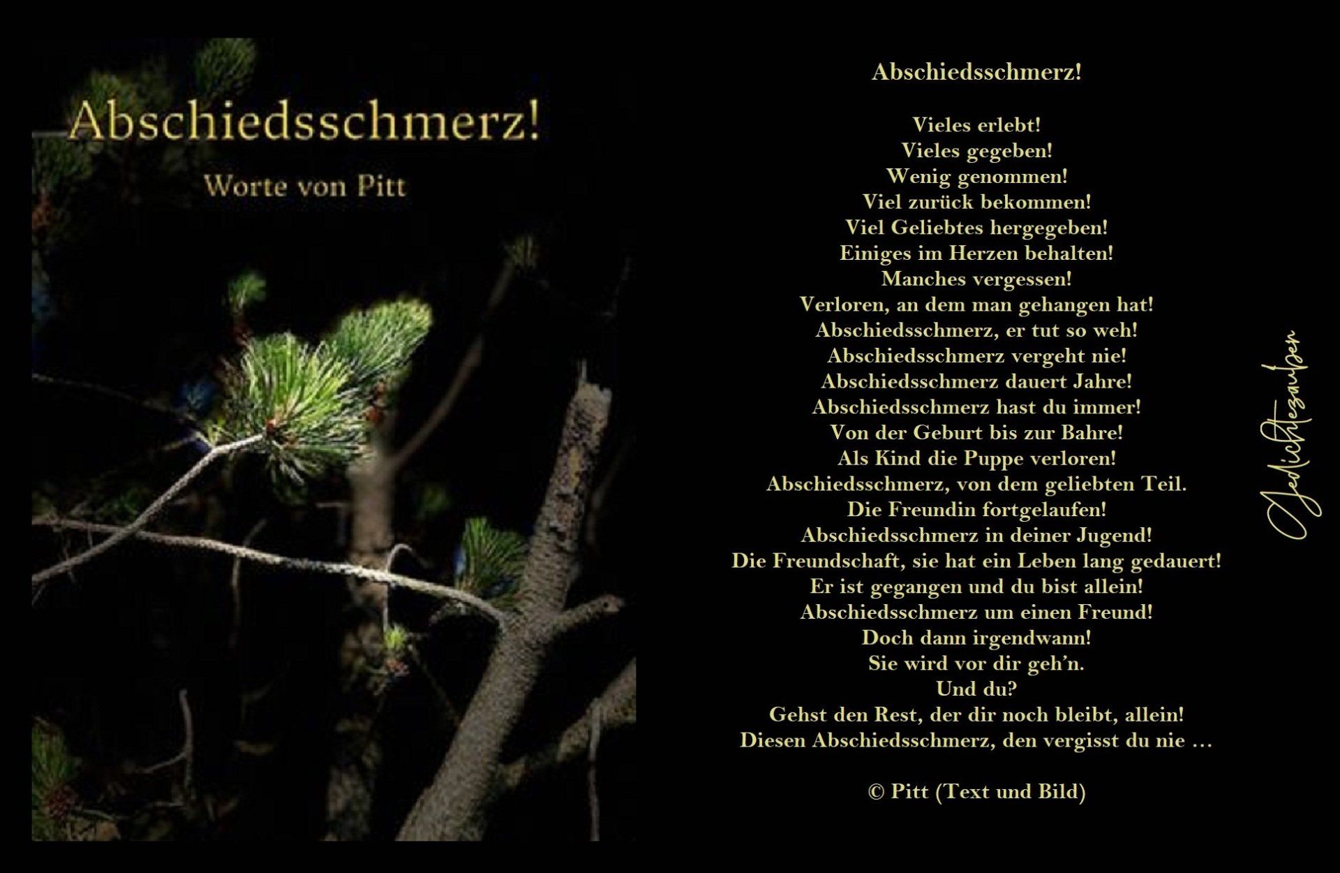 Ein tiefer Schmerz, ich spüre ihn. Ich frage mich, warum war Gott nicht hier. Was konntest du dafür