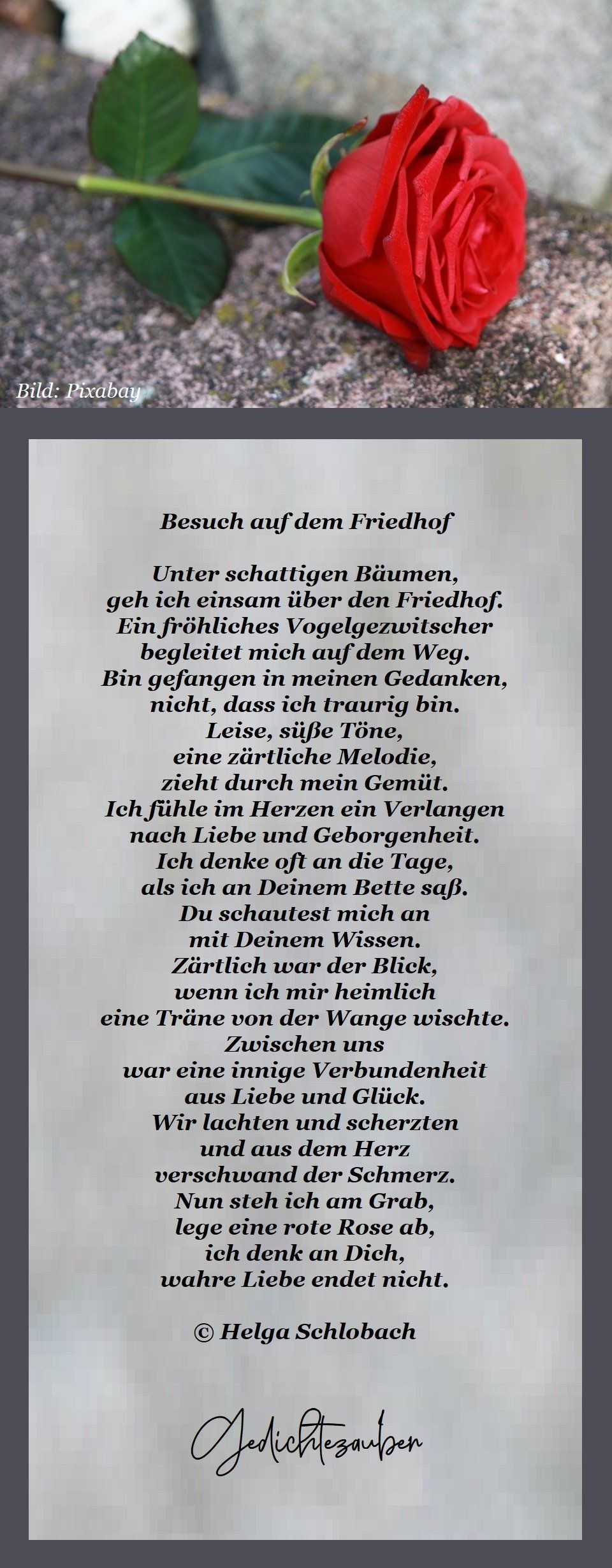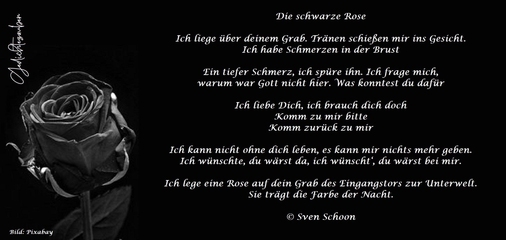 Ich lege eine Rose auf dein Grab des Eingangstors zur Unterwelt. Sie trägt die Farbe der Nacht.