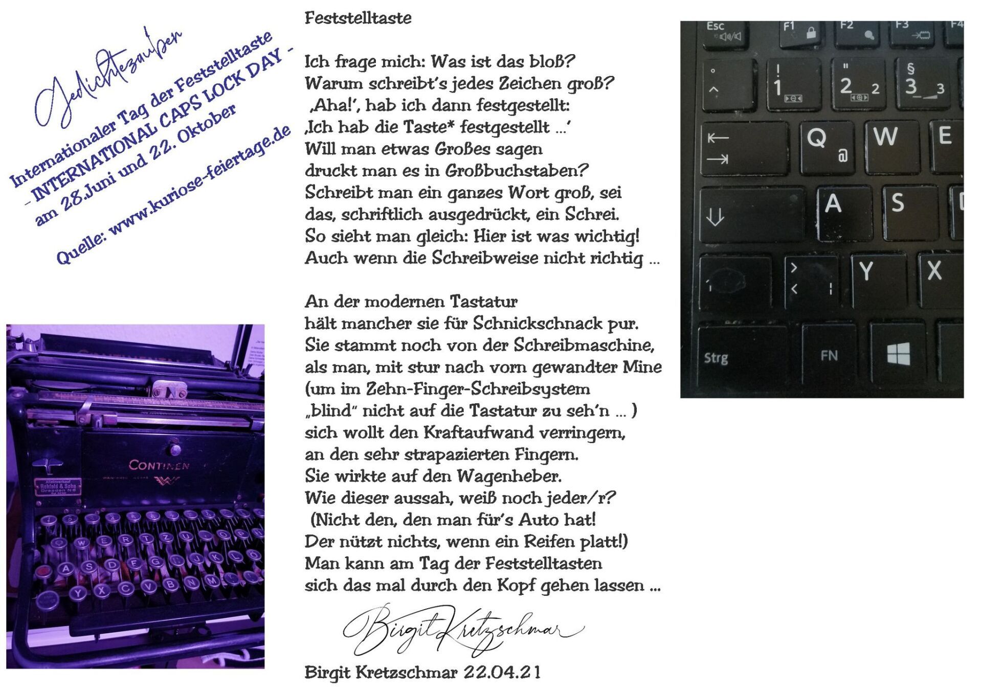 Man kann am Tag der Feststelltasten