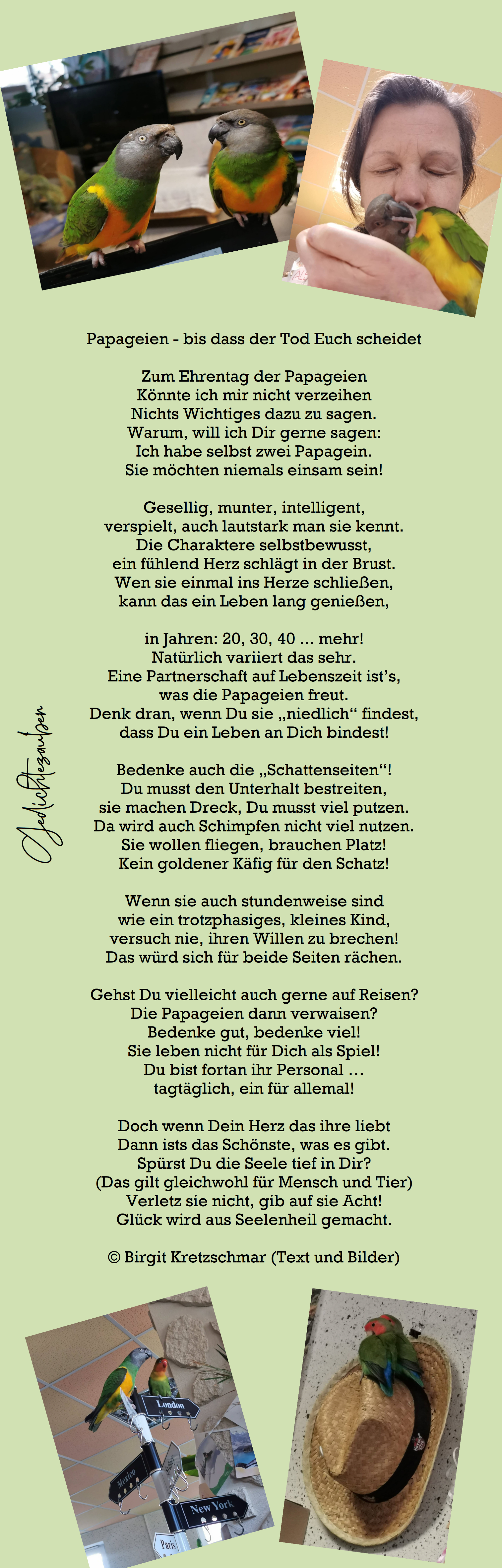 Ich habe selbst zwei Papagein.