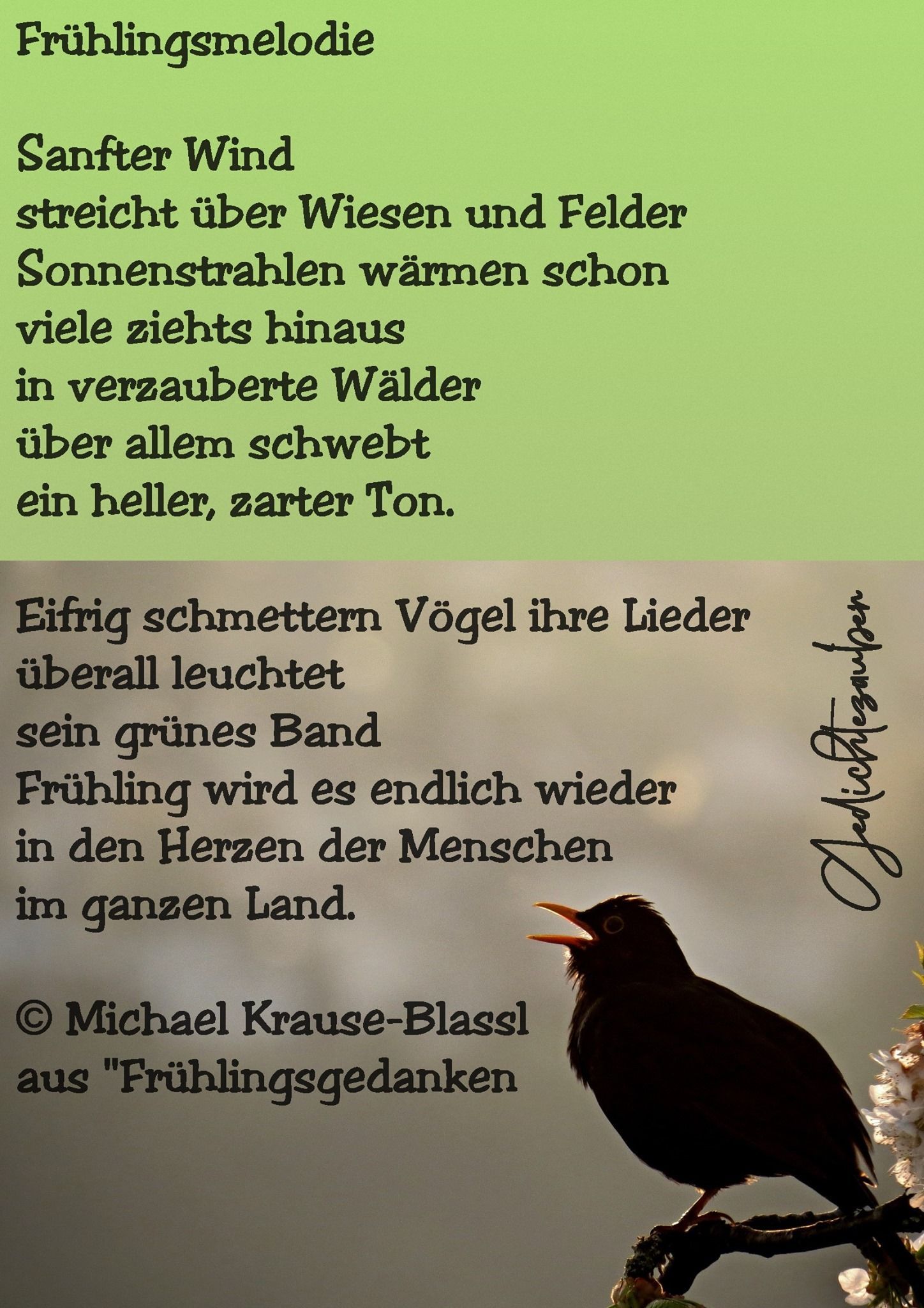 Überall hör' ich es zwitschern und lärmen.
