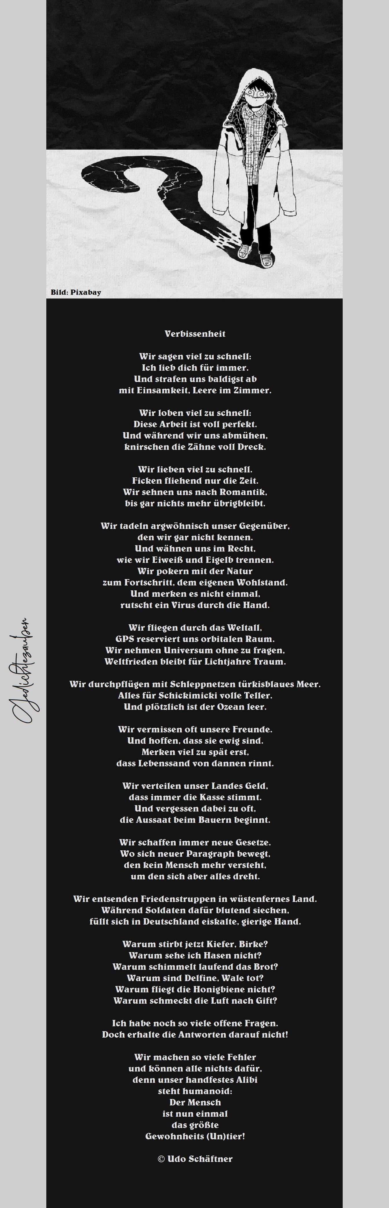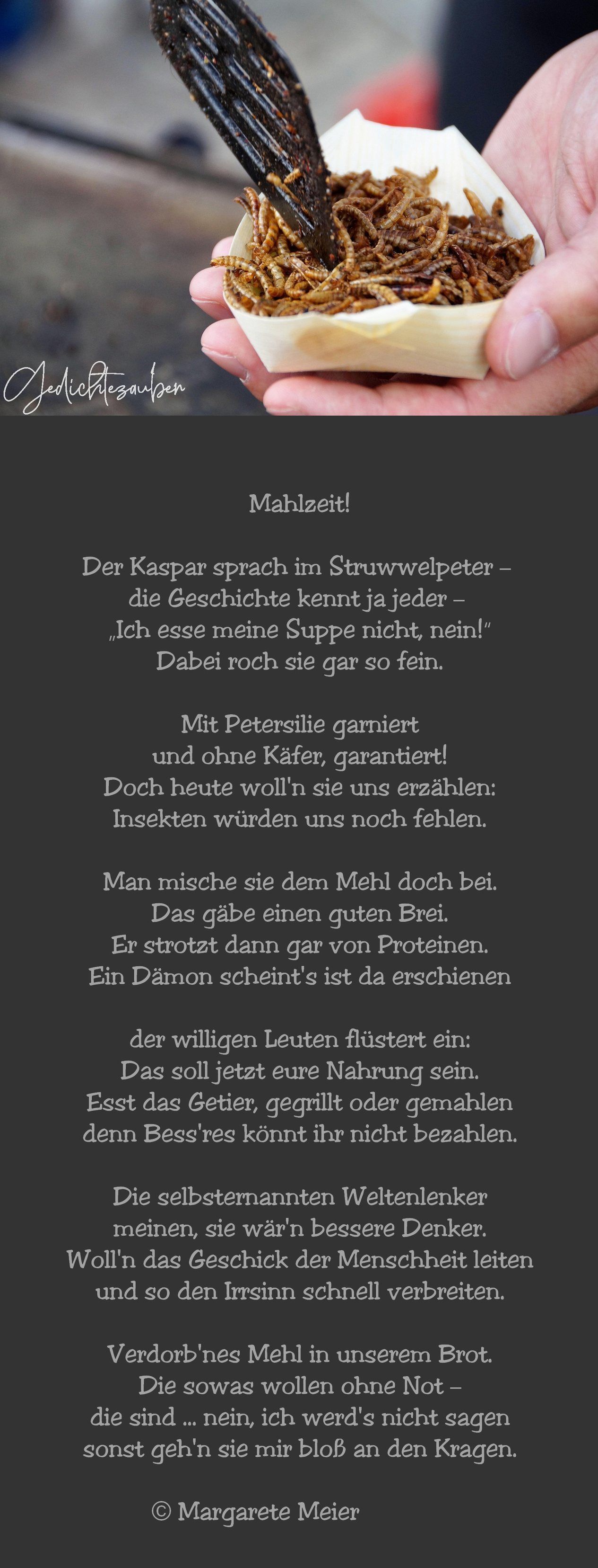 Und sage mühsam freundlich munter