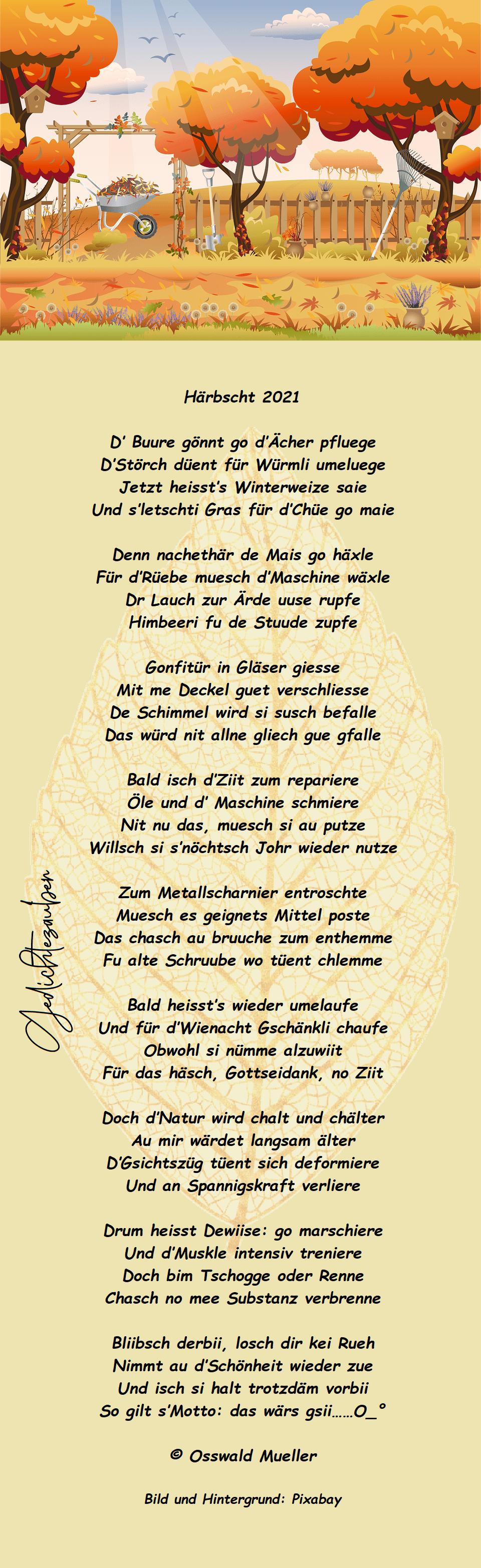 Darfsch s’Änd fum Monet nit vergässe