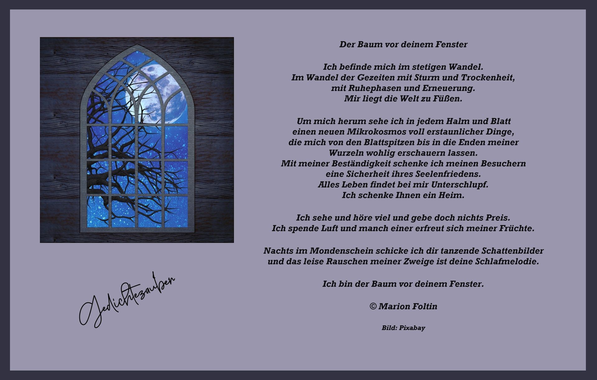 Ich bin der Baum vor deinem Fenster.
