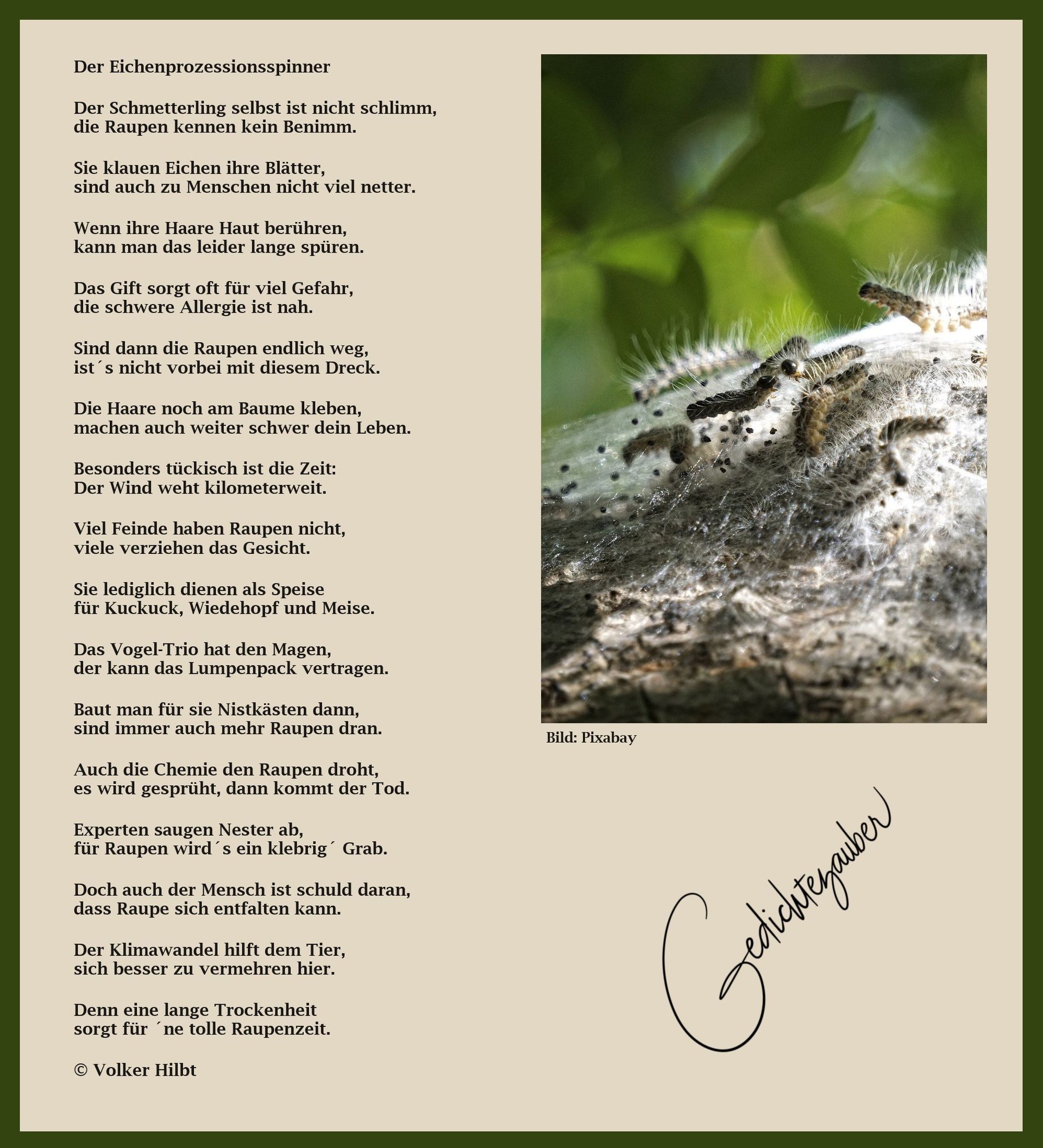 Auch die Chemie den Raupen droht,