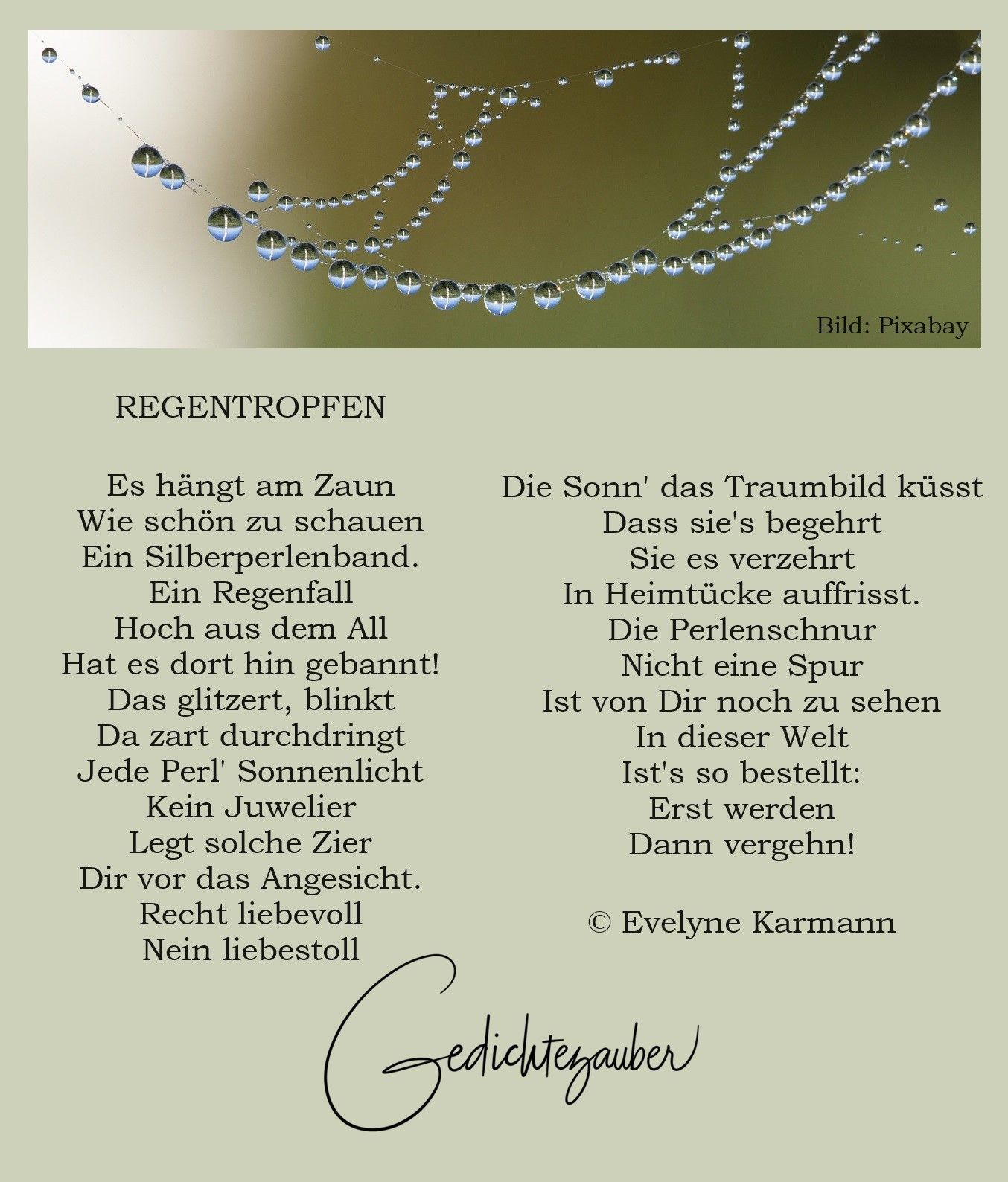 Besonders schön ist's, wenn die Sonne das Licht der Regentropfen bricht,