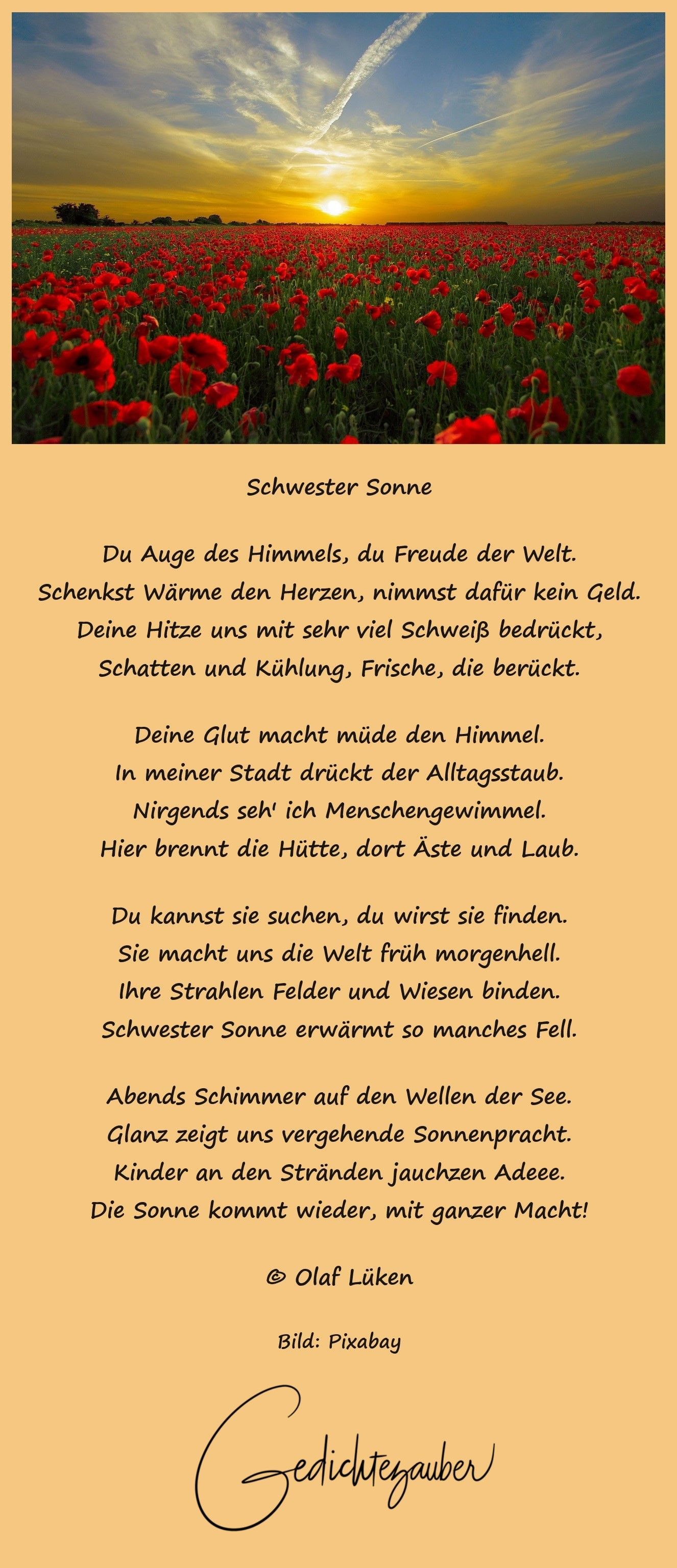 Dann strahlt die Sonne dir entgegen und scheucht die Regengeister fort.