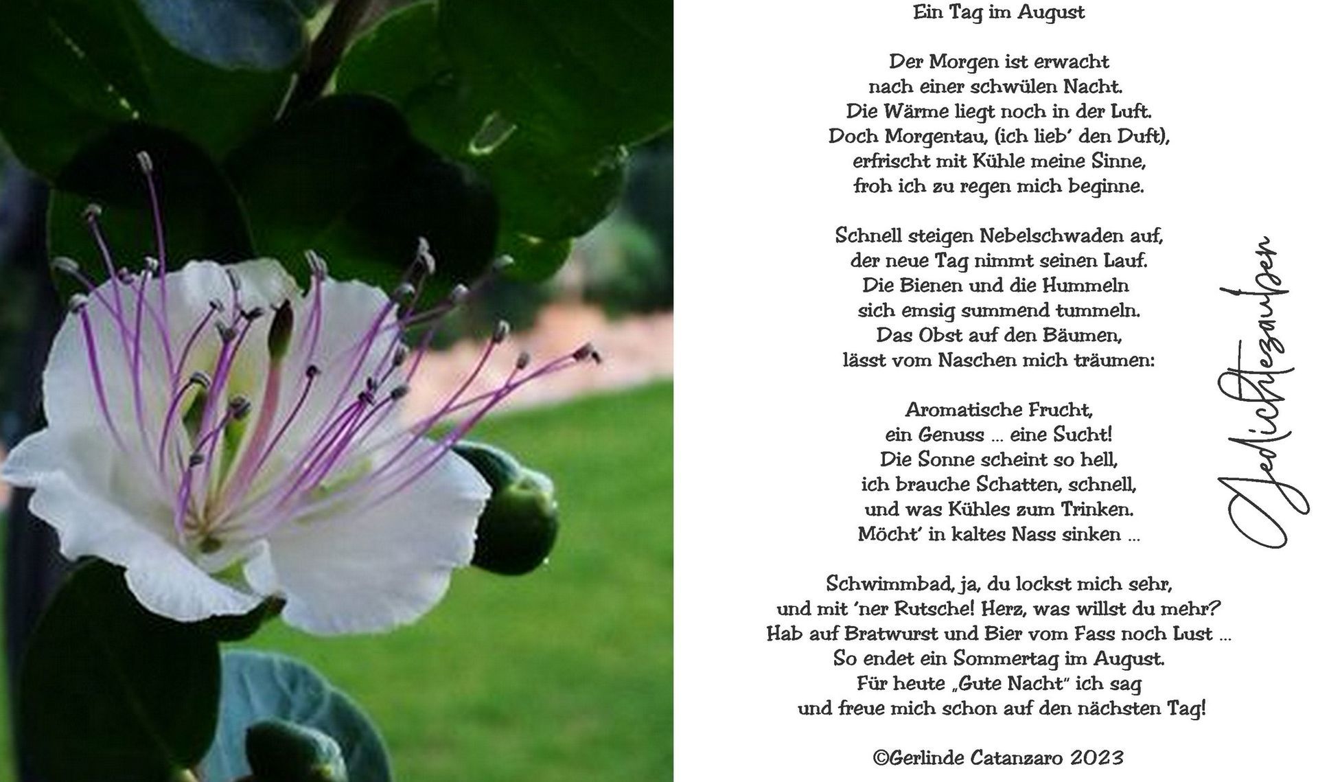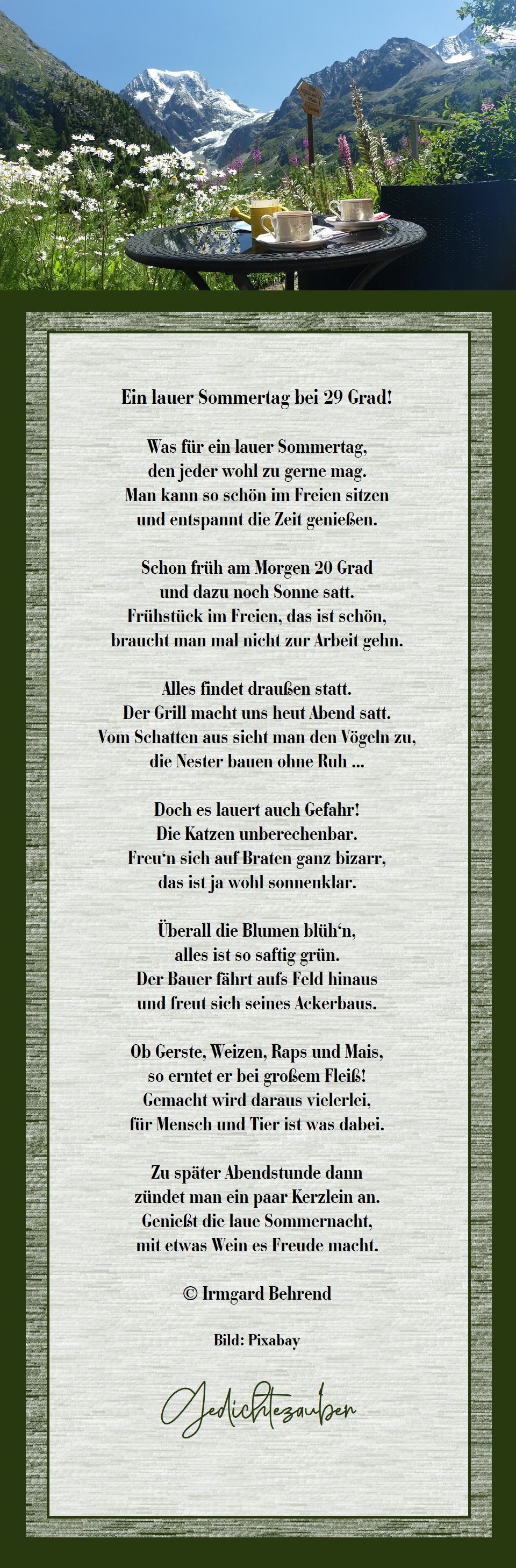 Es ist August - kein Lufthauch naht.