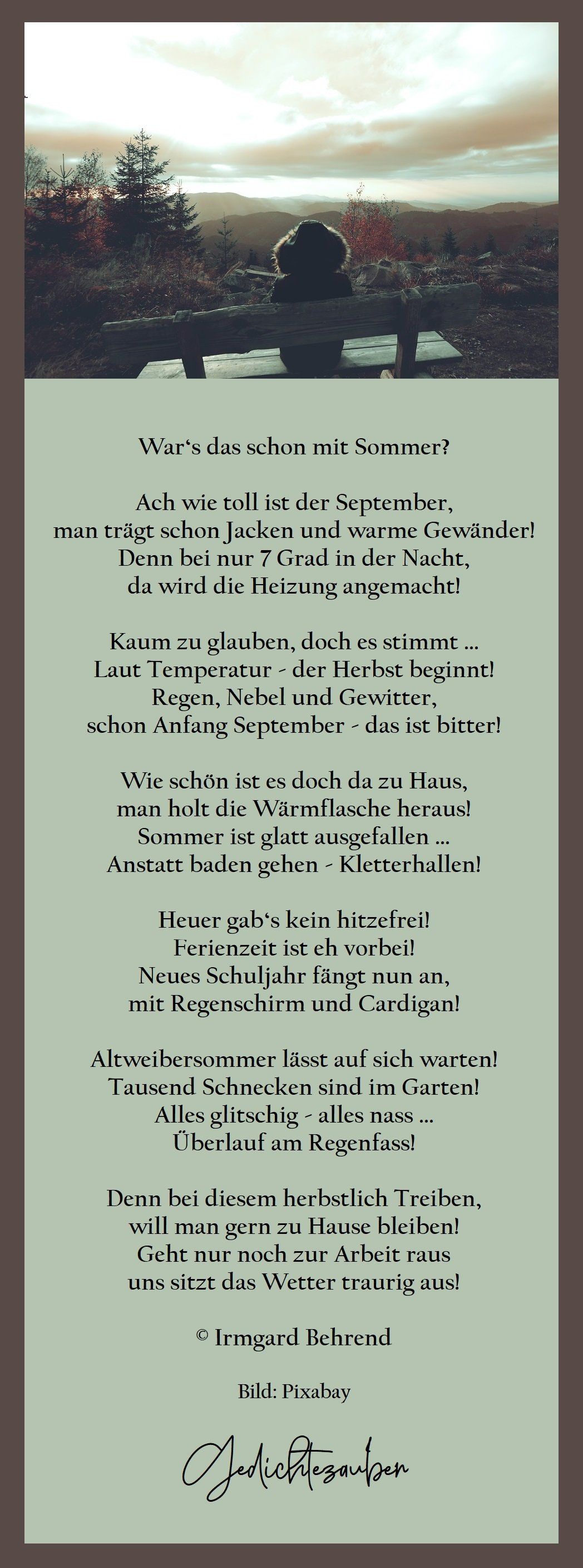 Der Sommer in den letzten Atemzügen liegt,