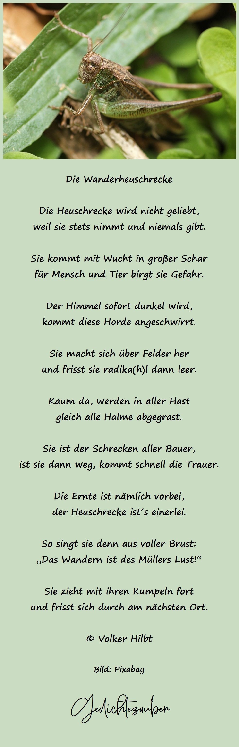 Die Heuschrecke wird nicht geliebt,