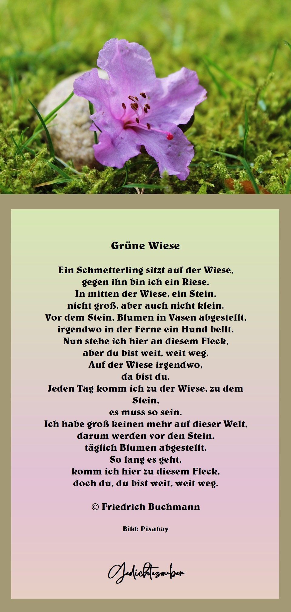 Jeden Tag komm ich zu der Wiese, zu dem Stein,