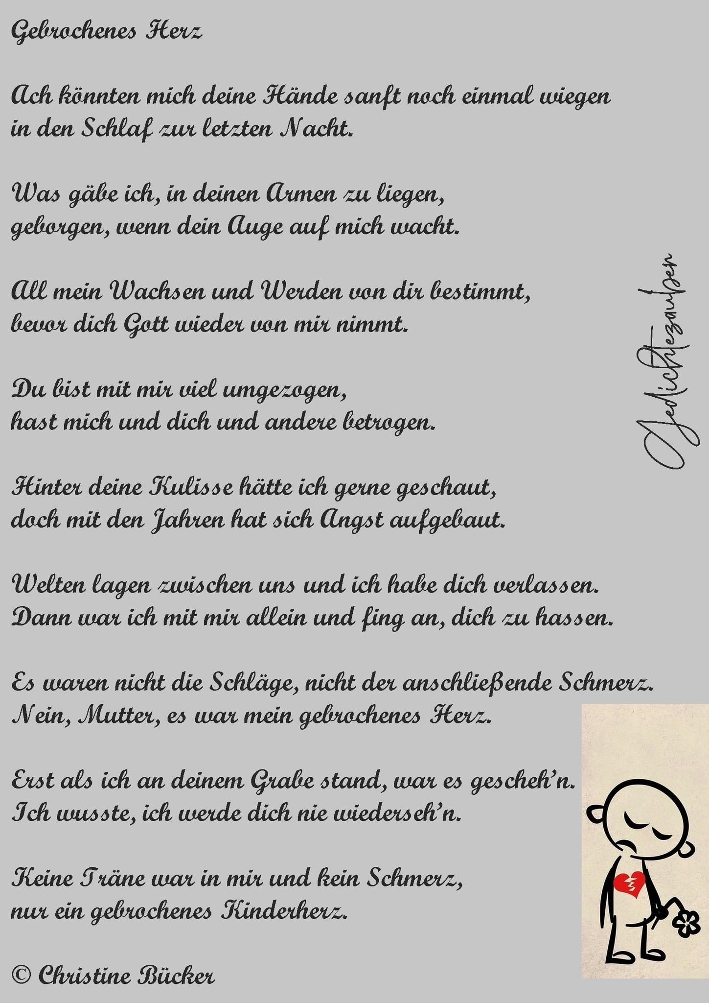 und niemand sieht die Trauer, die im Herzen keimt.