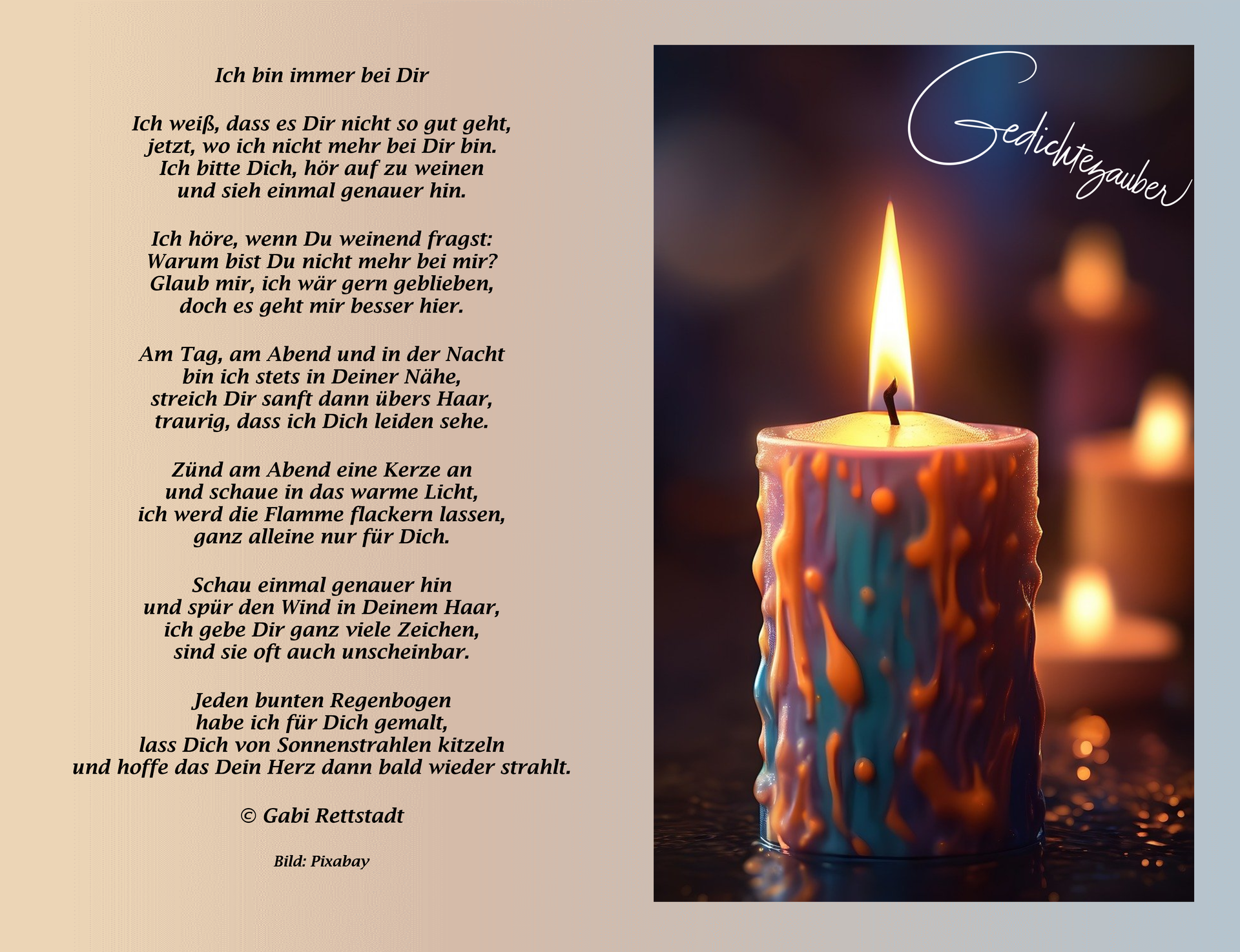 Behaltet mich lieb und vergesset mich nie.