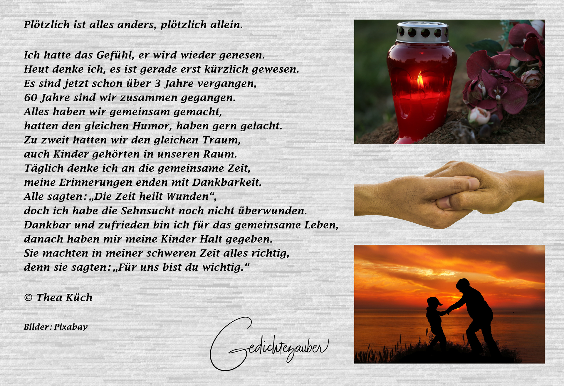 Doch die Erinnerungen an dich werden nie vergessen sein.
