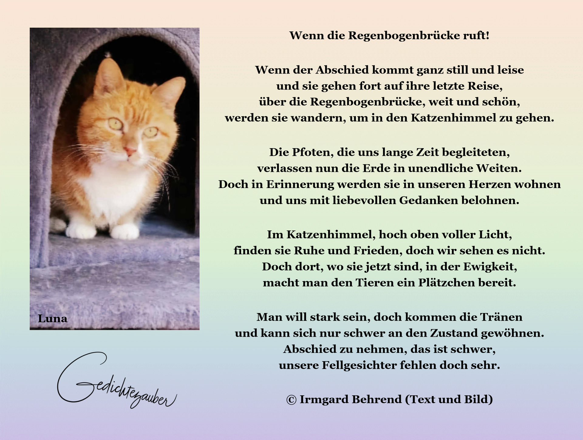 über die Regenbogenbrücke, weit und schön,