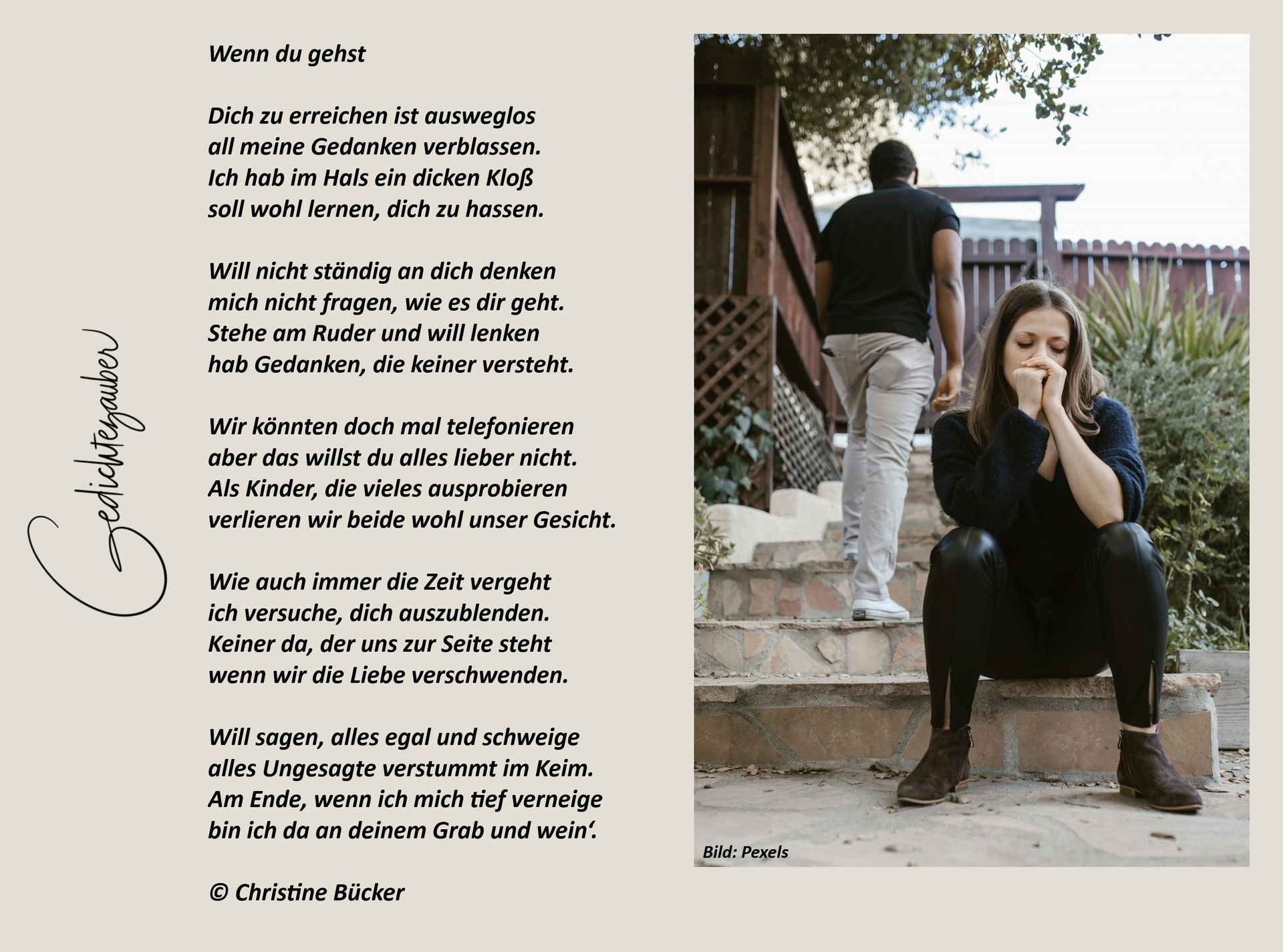 Abschied heißt auch Schmerzen, doch nur nicht traurig sein,