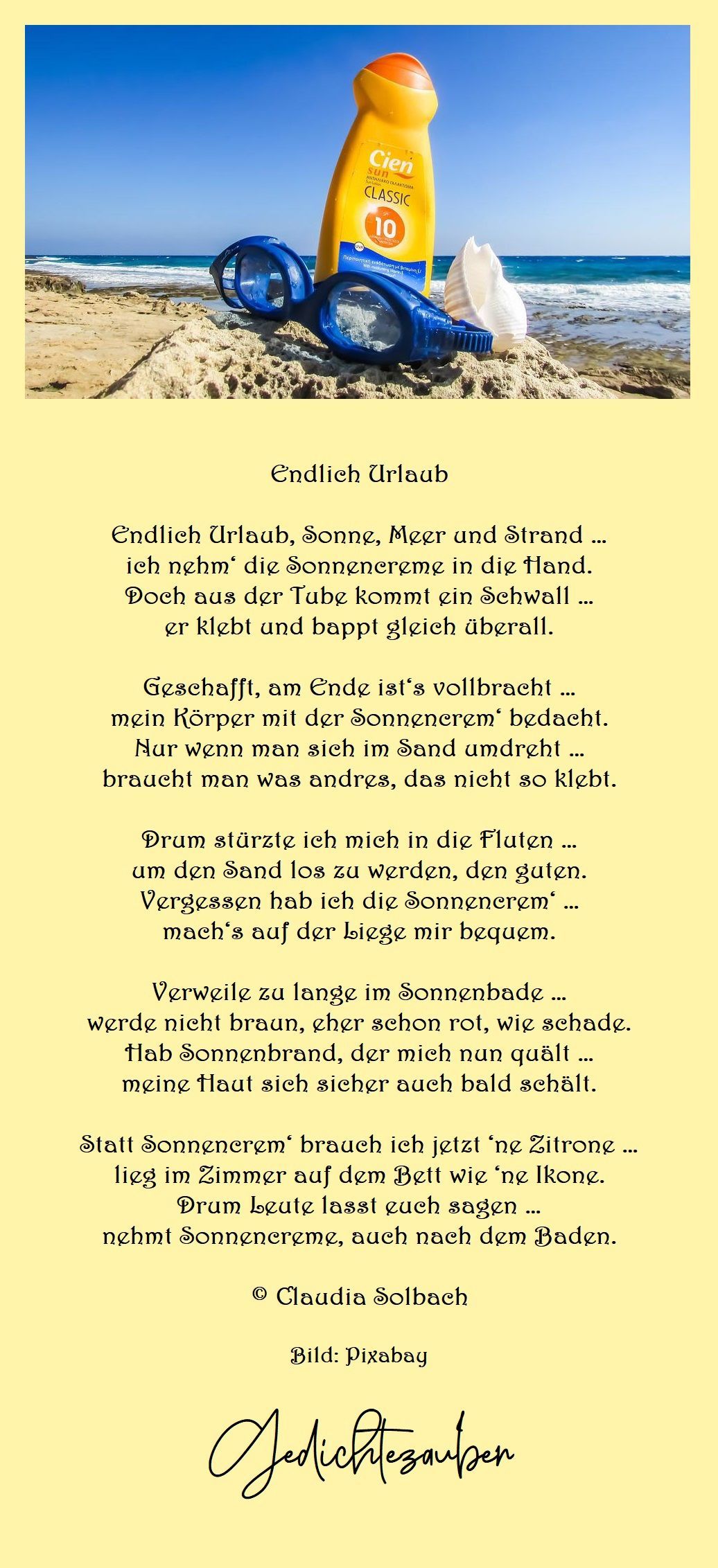 nehmt Sonnencreme, auch nach dem Baden.