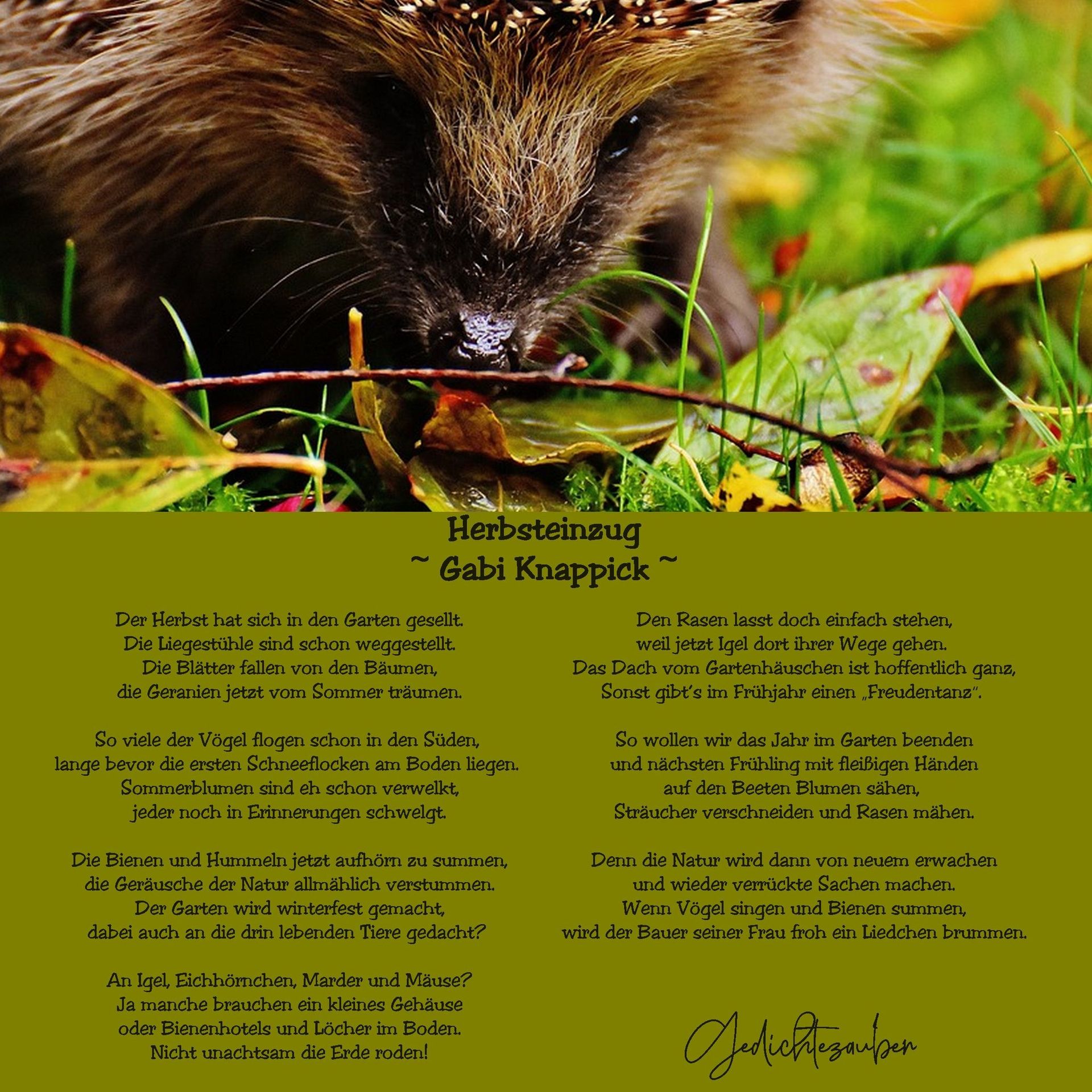 weil jetzt Igel dort ihrer Wege gehen.