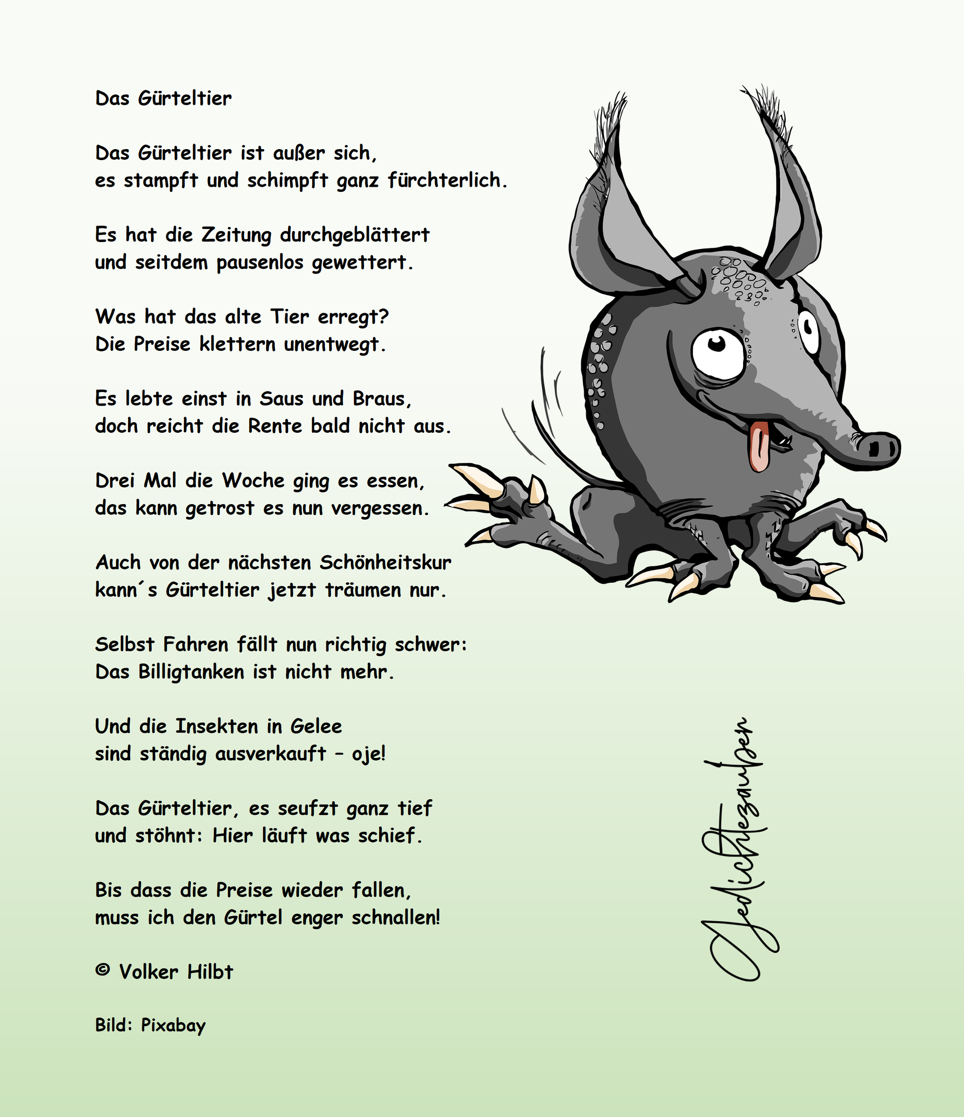 Und sage mühsam freundlich munter