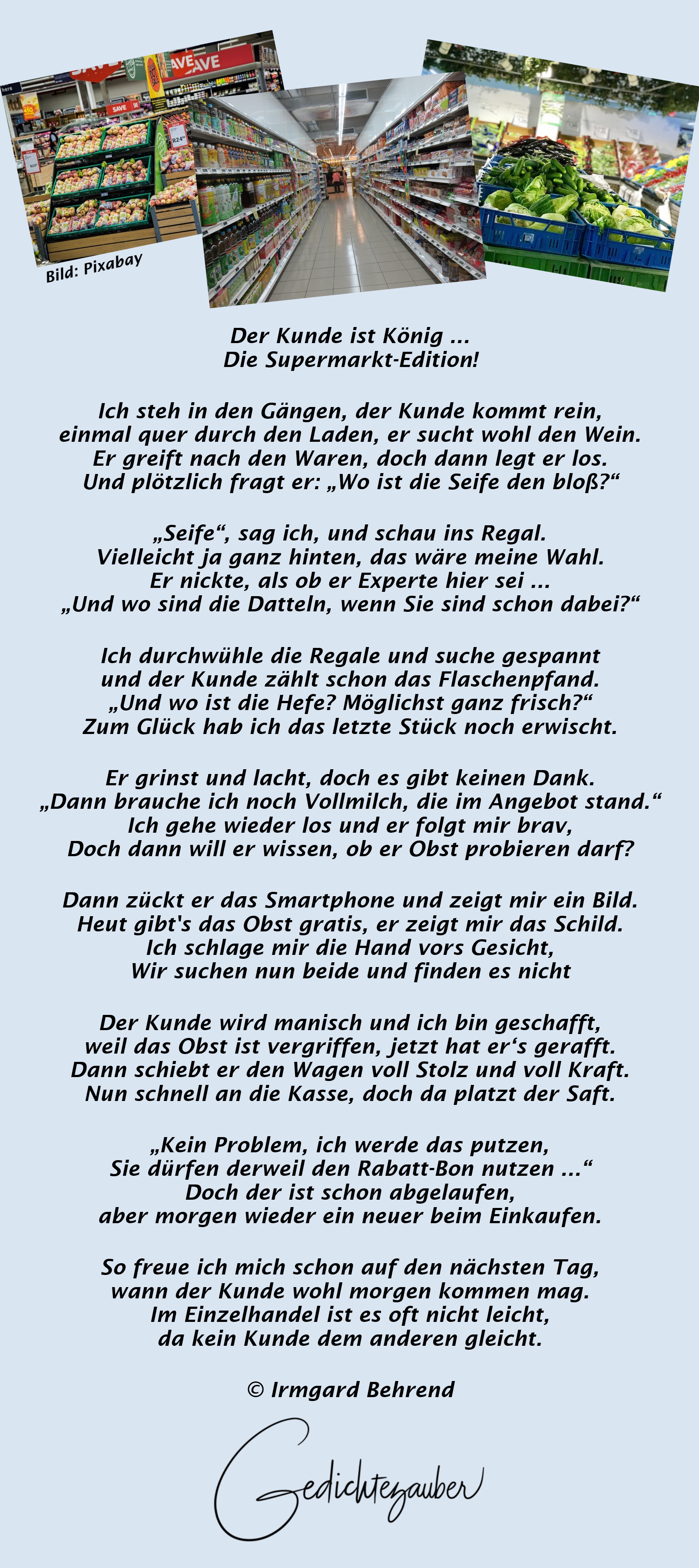 Ich steh in den Gängen, der Kunde kommt rein,