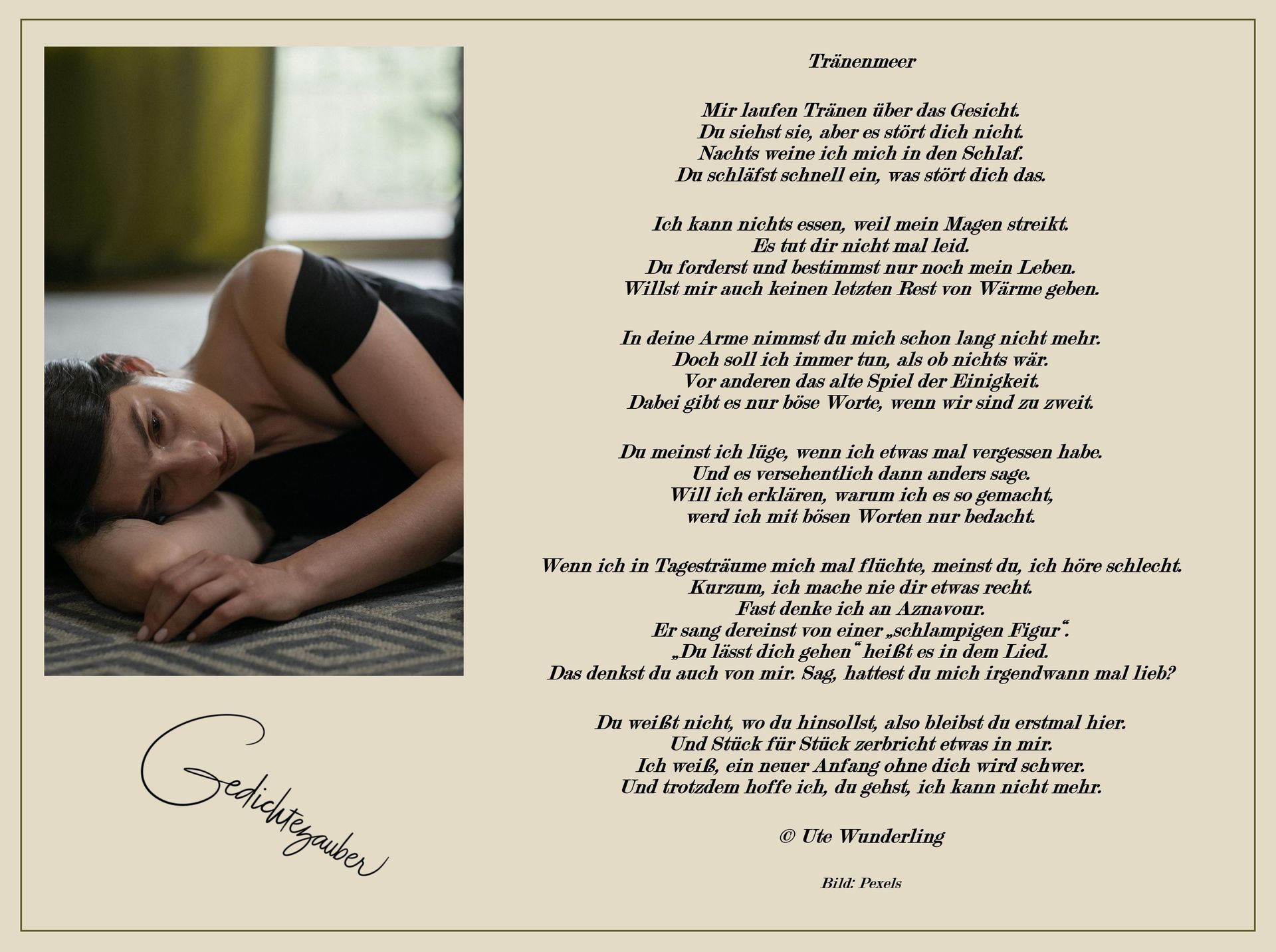 „Gedanken in Gedichtform exklusiv“, ihre Bände mit Gedichtezauber-Designs gibt es hier: https://www.epubli.com/?s=Helga+Wessel+Gedanken+in+Gedichtform+exklusiv