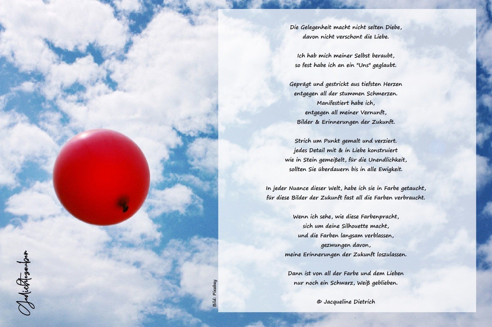 Lässt mich hilflos stehen, lang war der Kuss, doch schmeck ich ihn heute noch.