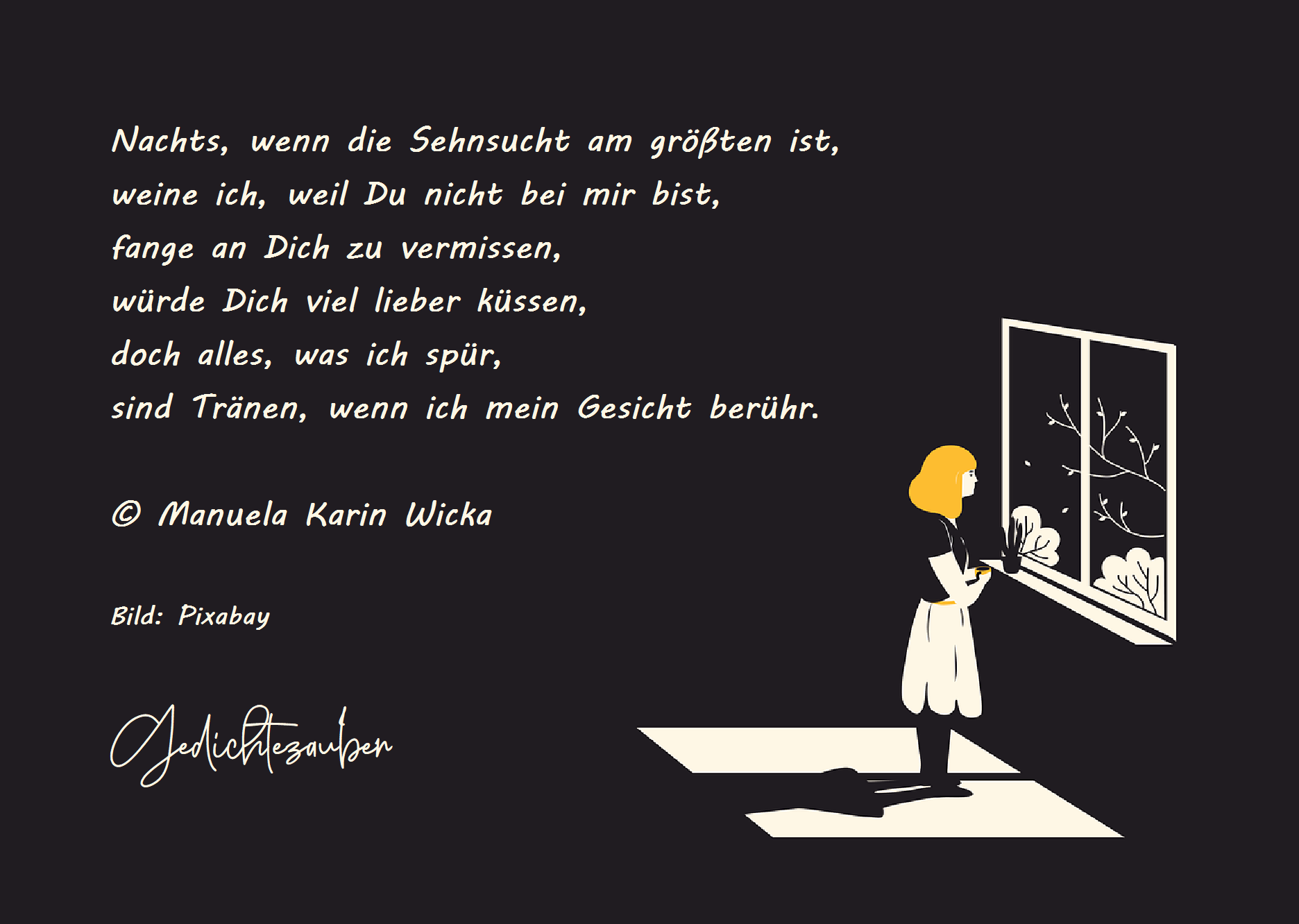 denk an dich all die Nächte und Tage.